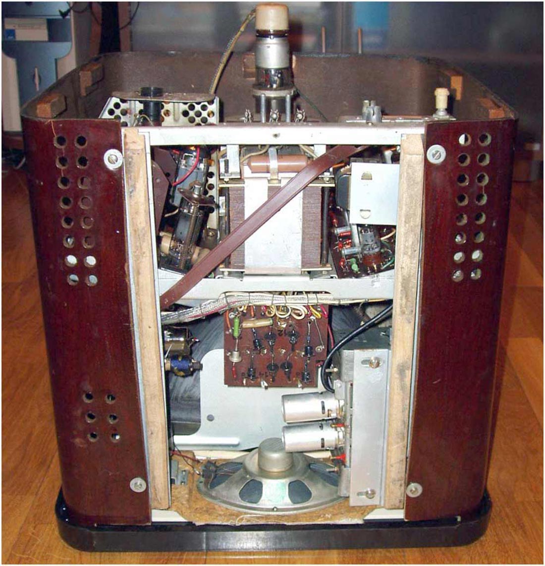 четкости. Футляр для телевизора изготовлен из гнутой фанеры и отделан под