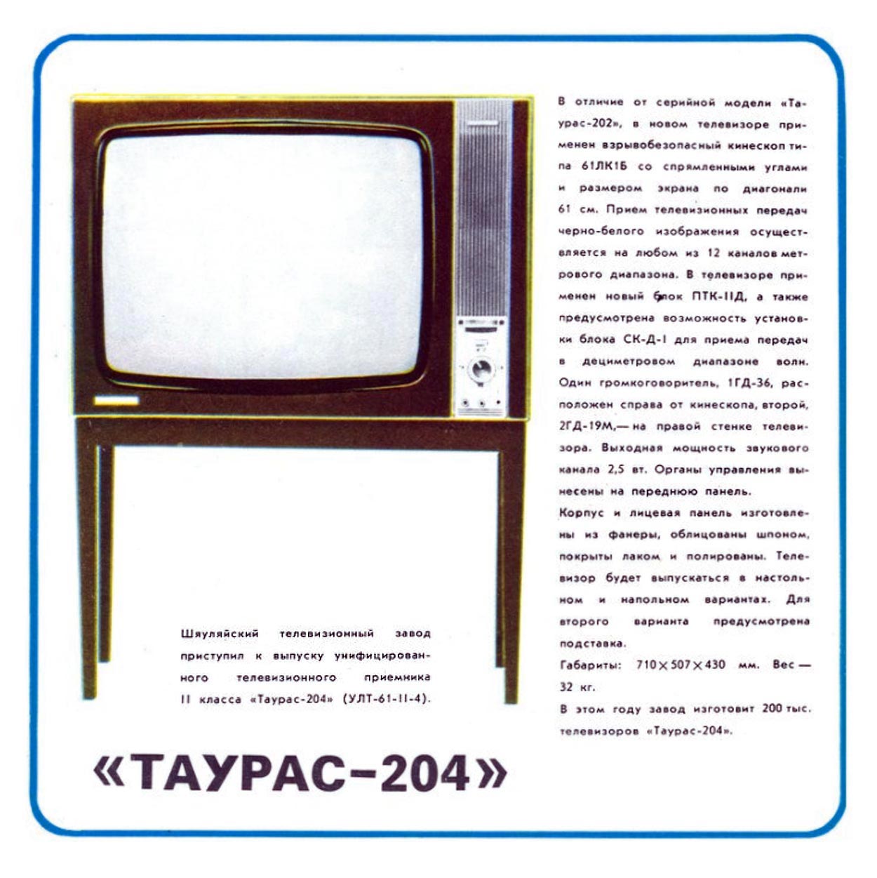 завод. Унифицированный ч/б телевизор 2-го класса ''Таурас-204'' разработан