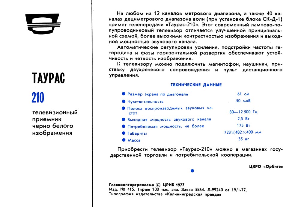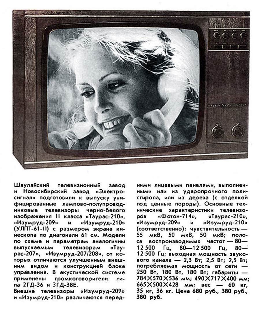 ч/б изображения "Таурас-210" с 1978 года выпускал Шауляйский телевизионный