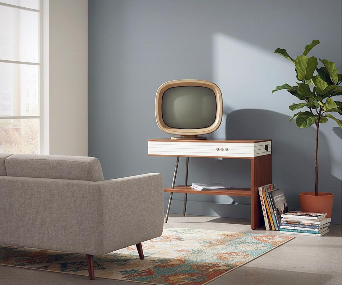 к себе его экран. Узлы и детали размещены в столике. Телевизор снабжен