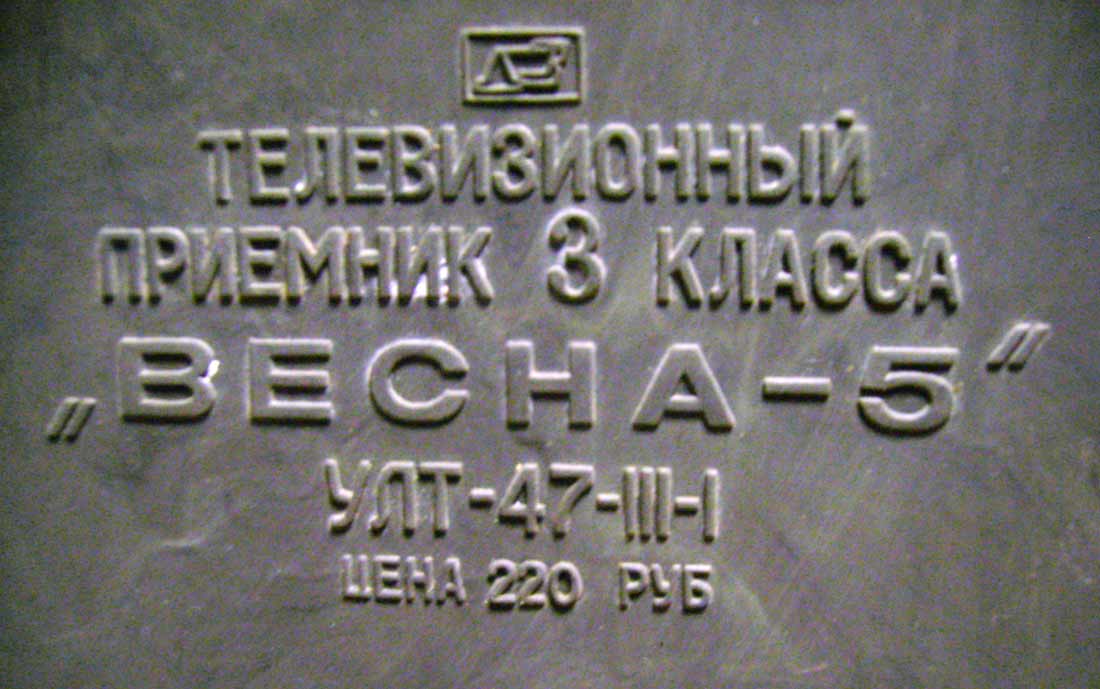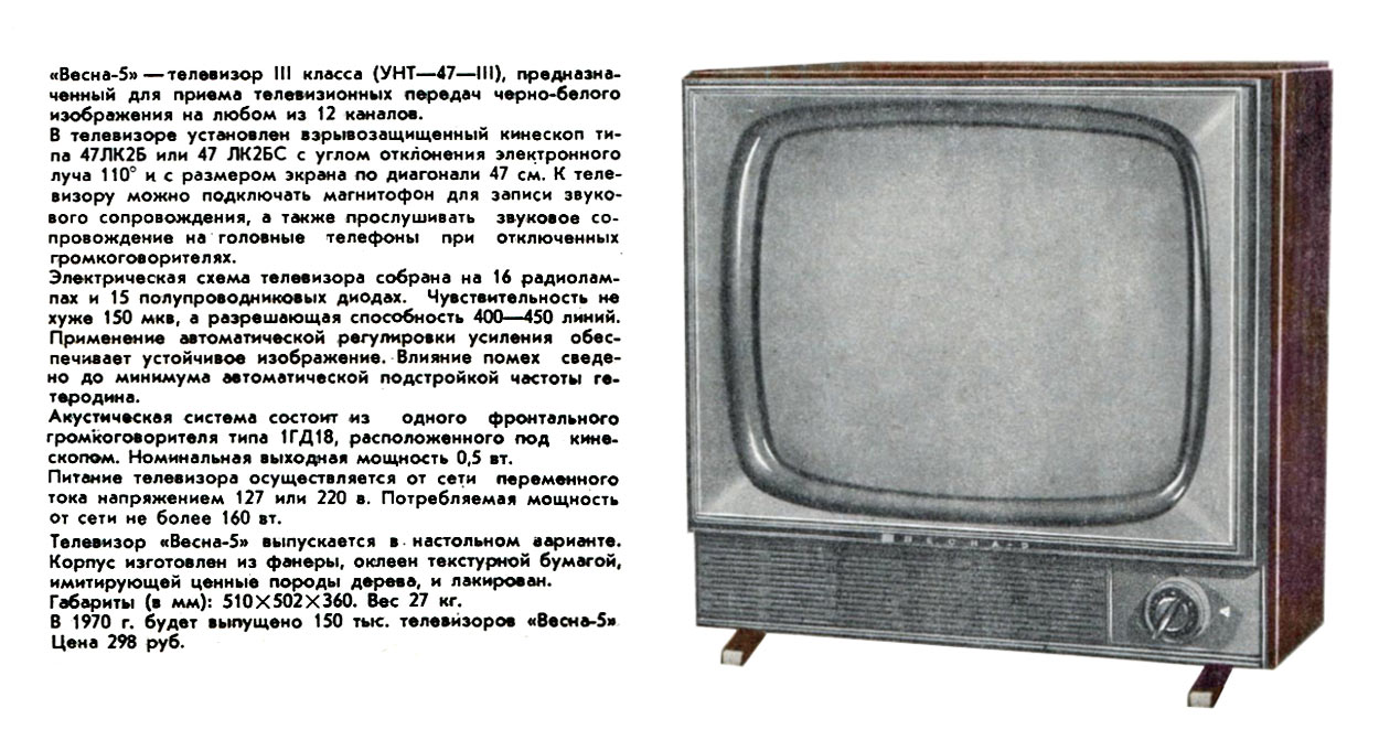 телевизор третьего класса ''Весна-5'' (УЛТ-47-III-I) предназначен для приёма