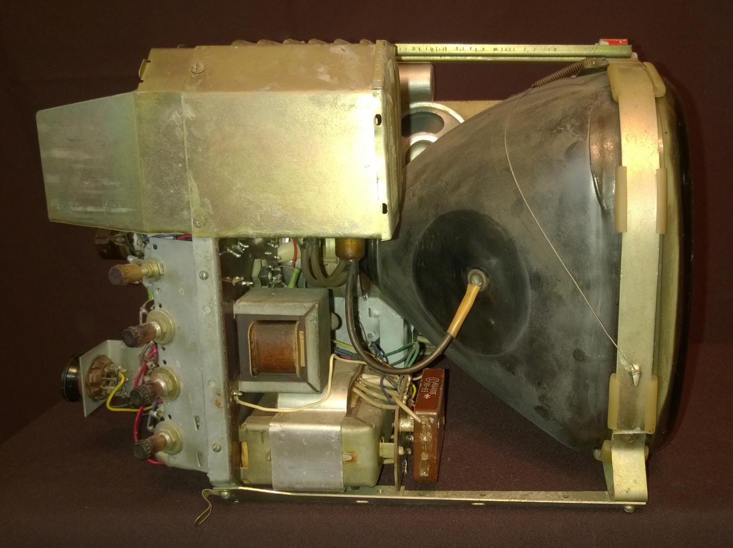 и положение ПТК, выходного трансформатора звука, планки с сетевыми предохранителями.