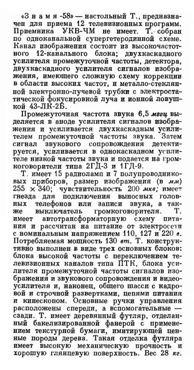 Телевизор ''Знамя-58'' модернизация модели ''Знамя'', а выполнен по конструкции