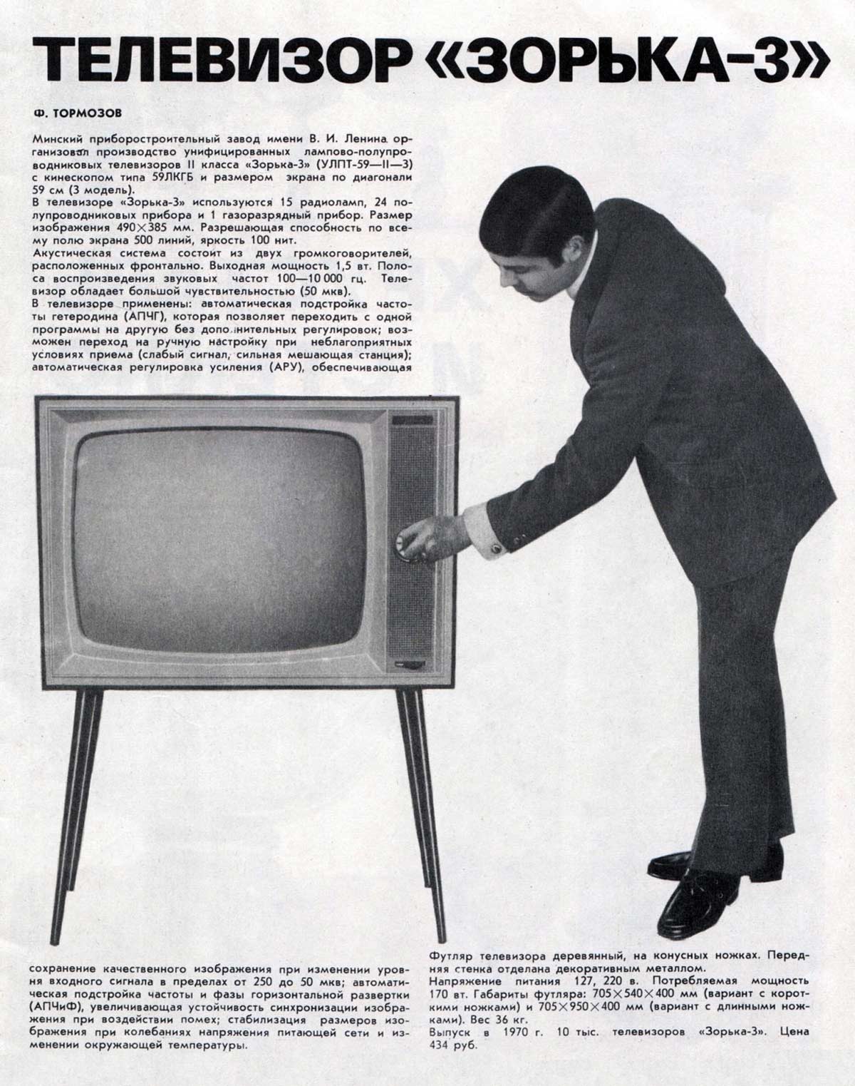 приёмник чёрно-белого изображения "Зорька" с 1965 года выпускал Минский