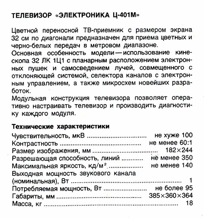 Ц-401М'' - это переносной полупроводниковый телевизионный приёмник, выполненный