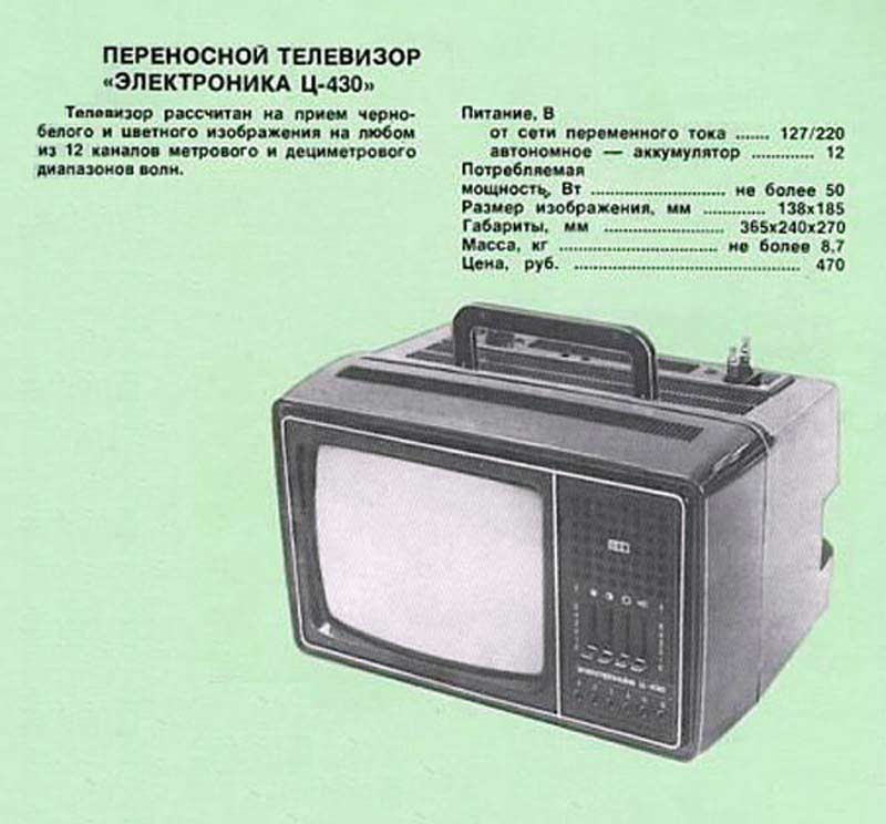 Электроника Ц-432 "Аврора". Телевизор предназначен для приёма программ