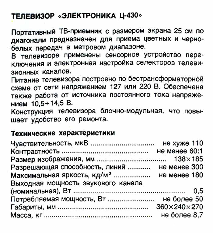 - 315...6300 Гц. Потребляемая от сети мощность 50 Вт. Габариты телевизора