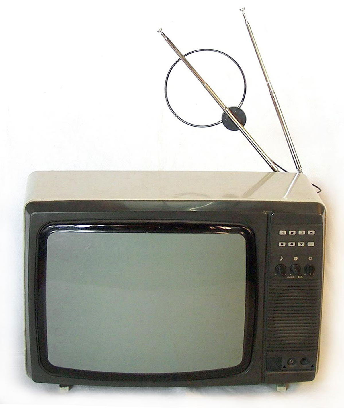 блок переключателей телевизора и ручки регулировки частоты кадров, контрастности,