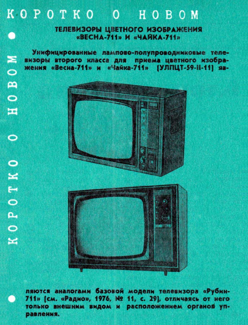 аналогом модели Рубин-711'', отличаясь лишь оформлением. В телевизоре предусмотрена