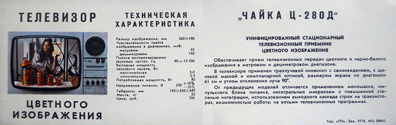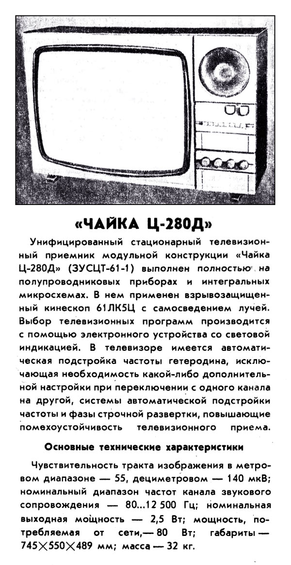 телевизор "Чайка Ц-280Д" с 1985 года выпускал Горьковский телевизионный