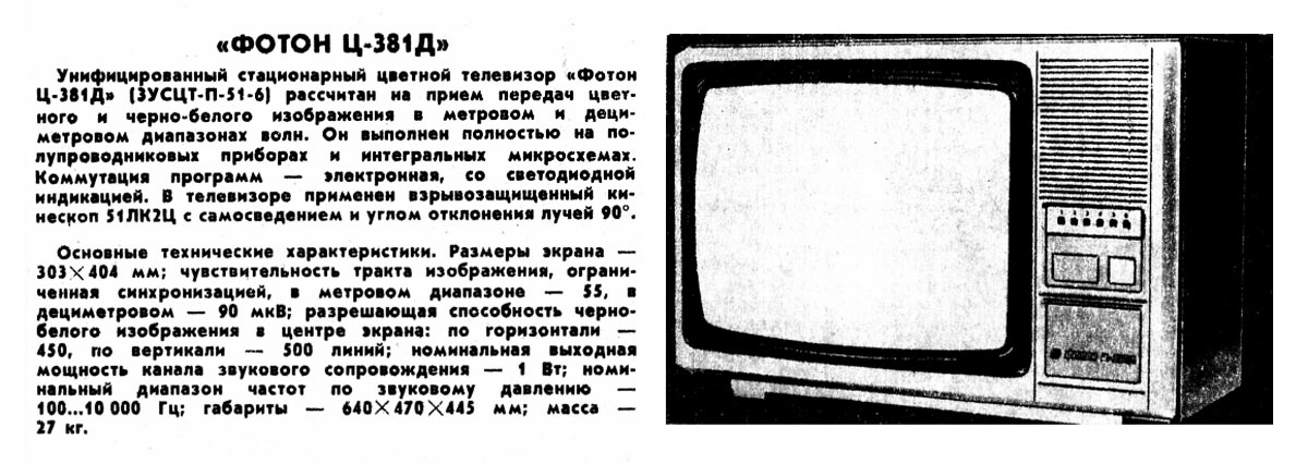 приёмник цветного изображения "Фотон Ц-381/Д" с 1986 года выпускал Симферопольский
