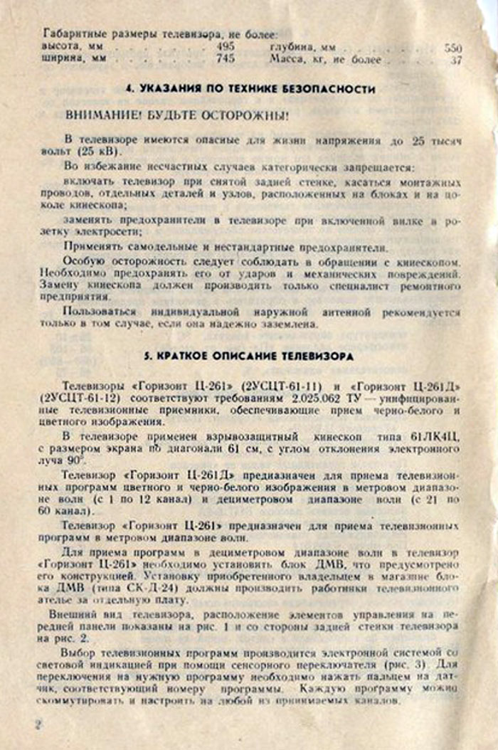 Цветной телевизионный приёмник "Горизонт Ц-261/Д" выпускался с 1985 года Минским ПО "Горизонт". Краткое описание телевизора внизу.