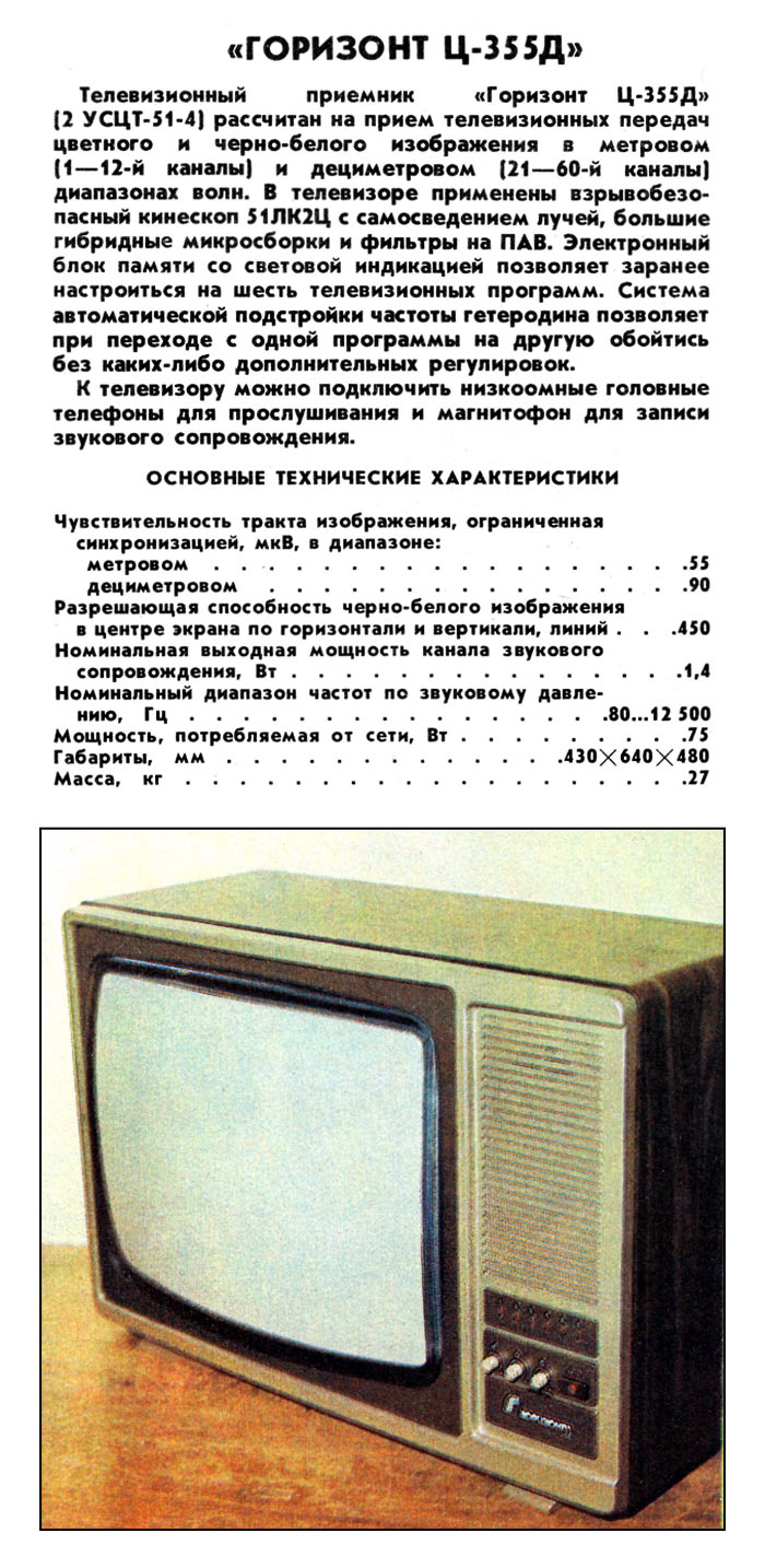 приёмник цветного изображения "Горизонт Ц-355/Д" с начала 1985 года выпускало