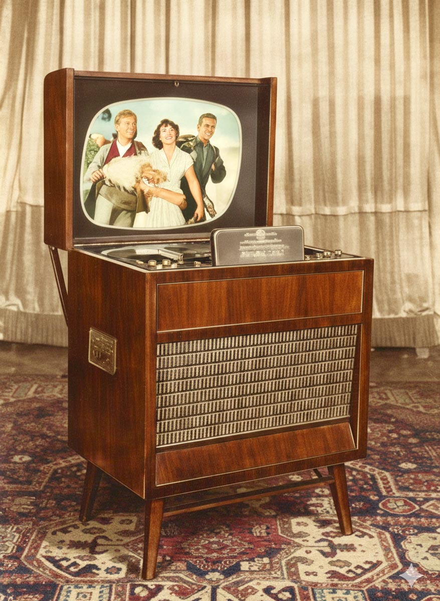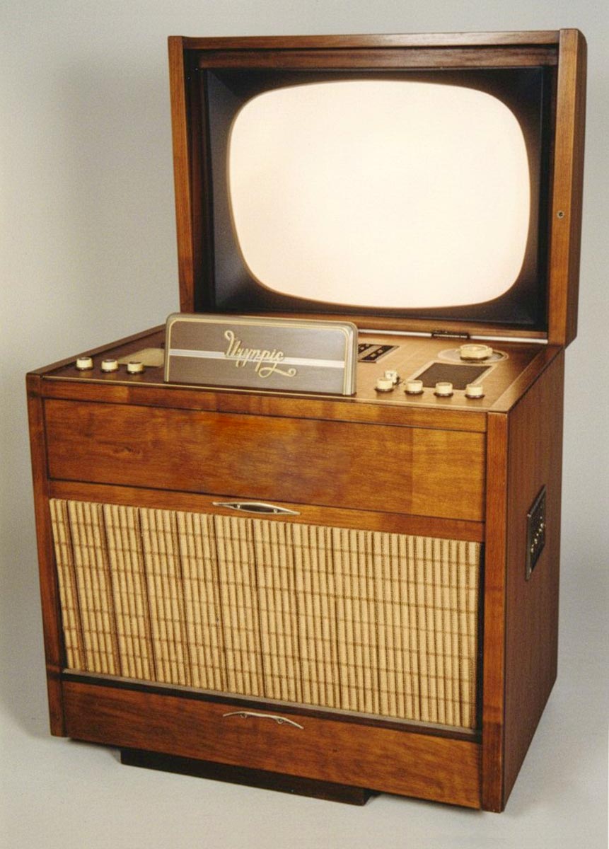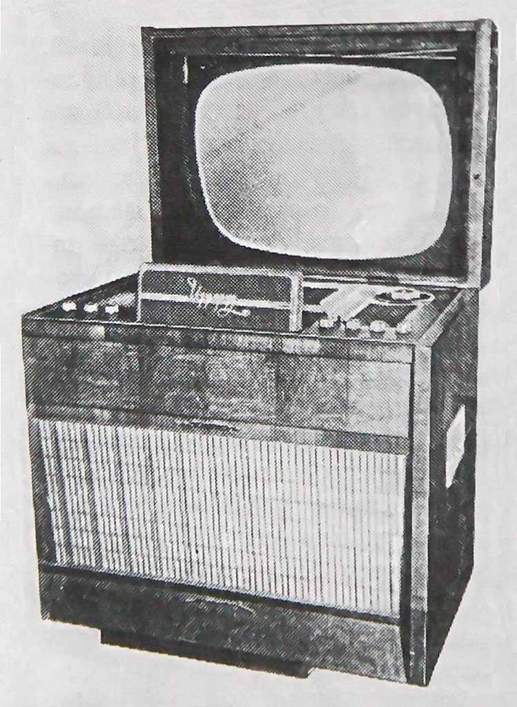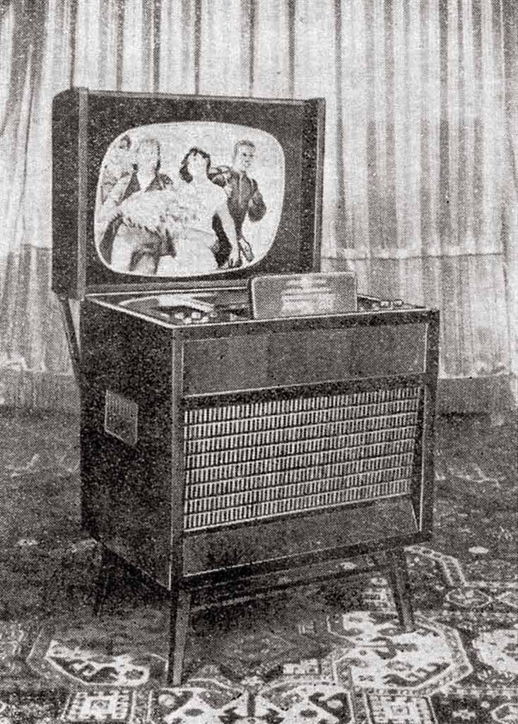 ч/б телевизионных передач. Телевизор выполнен в виде консольном варианте,