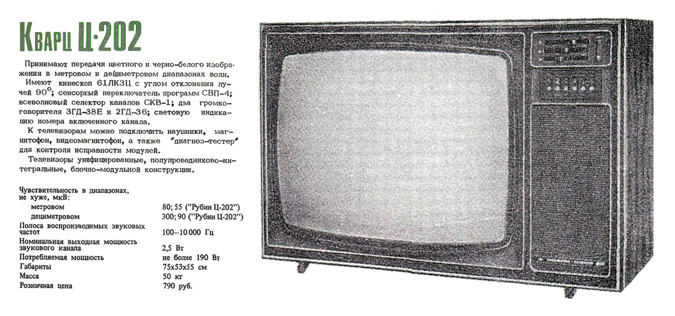 "Кварц Ц-202" с 1982 года выпускал Омский телевизионный завод. Цветной