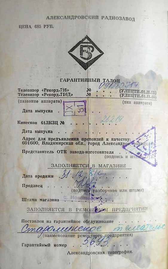 "Рекорд-716" с 1977 года выпускал Александровский радиозавод. ''Рекорд-716/Д''