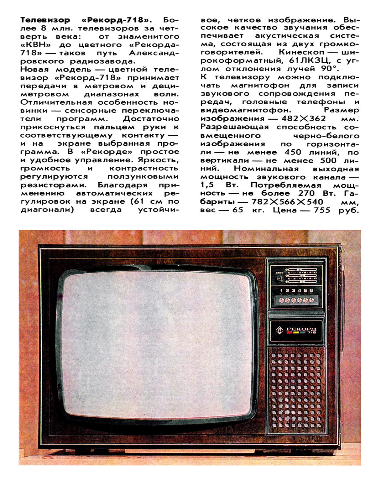 телевизор "Рекорд-718" с начала 1978 года подготовил к выпуску "Александровский