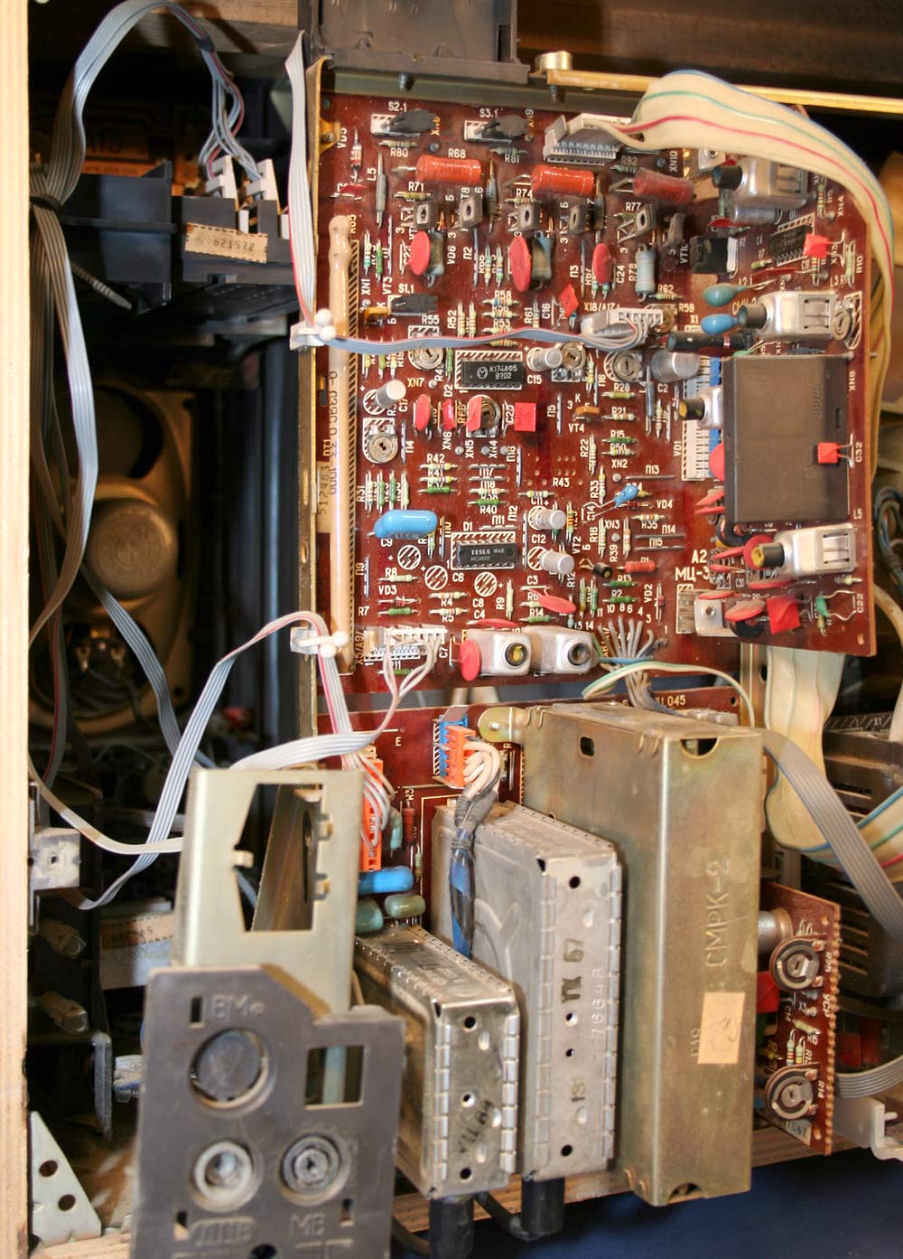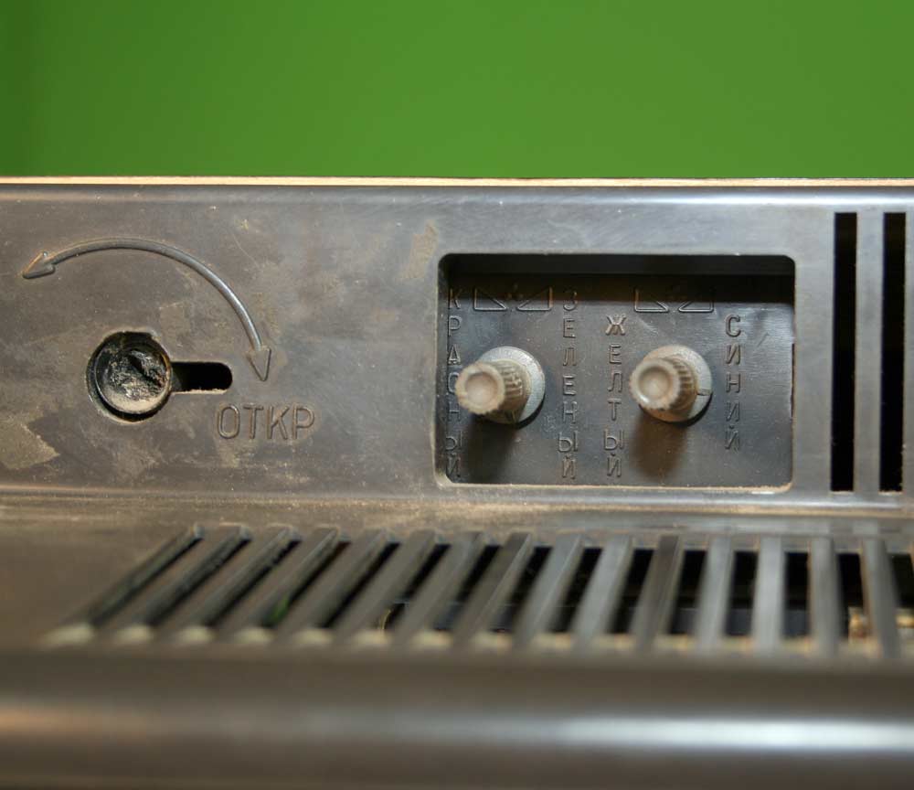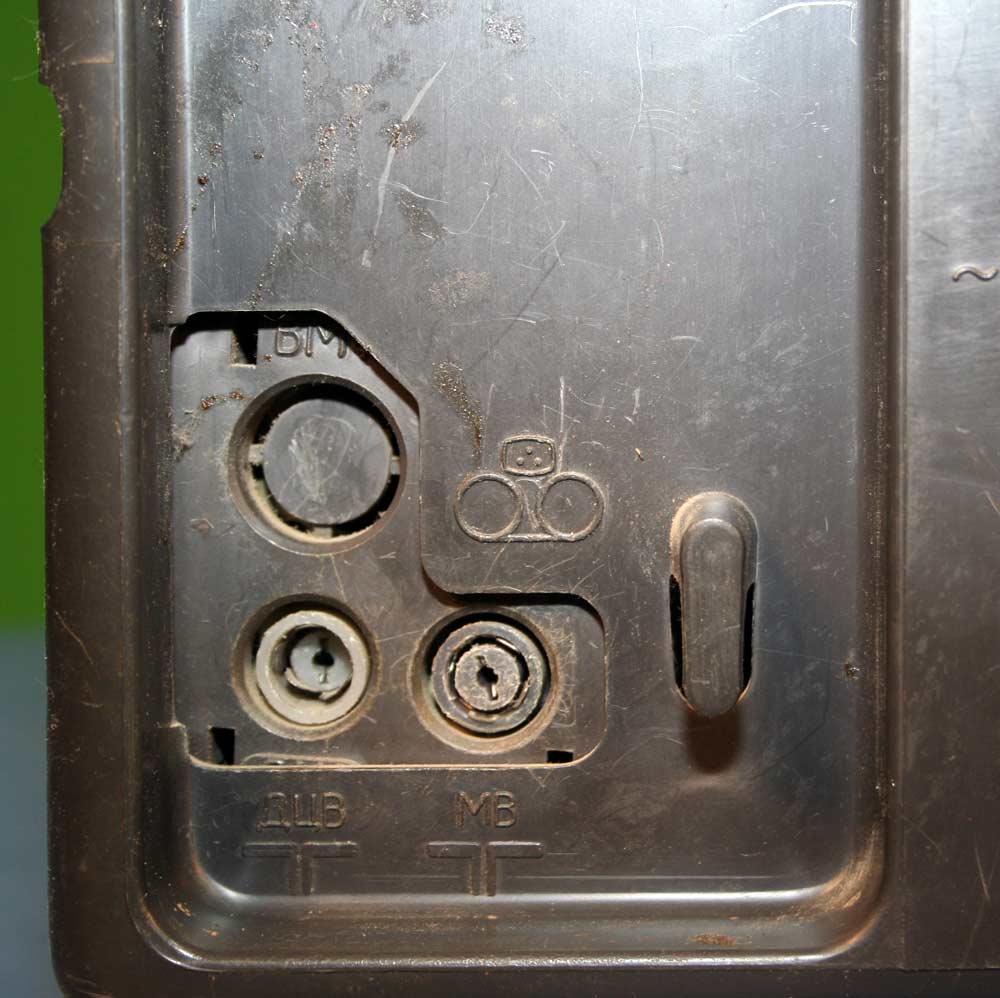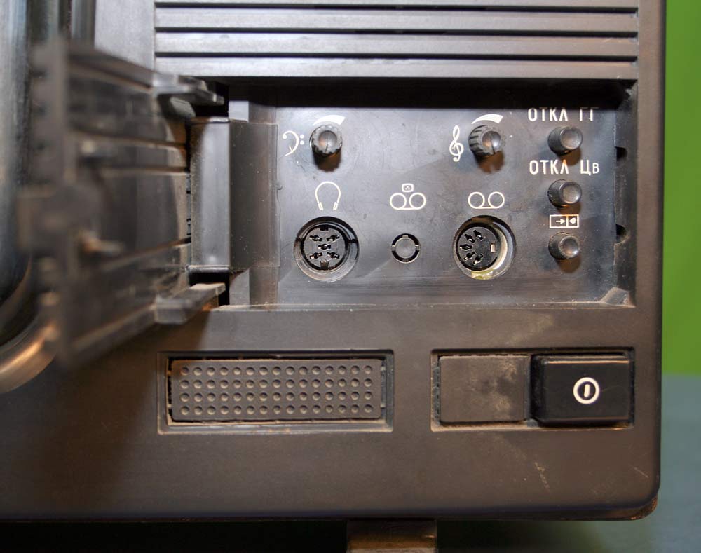 Имеются гнёзда для магнитофона, головных телефонов, видеомагнитофона инд.