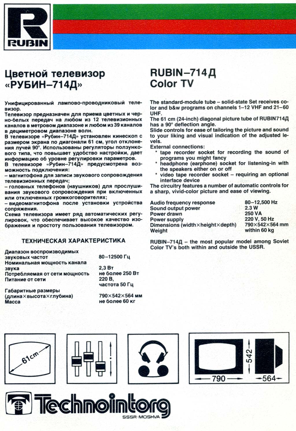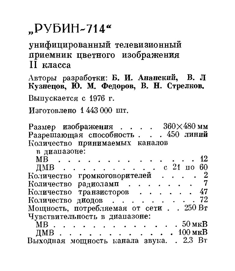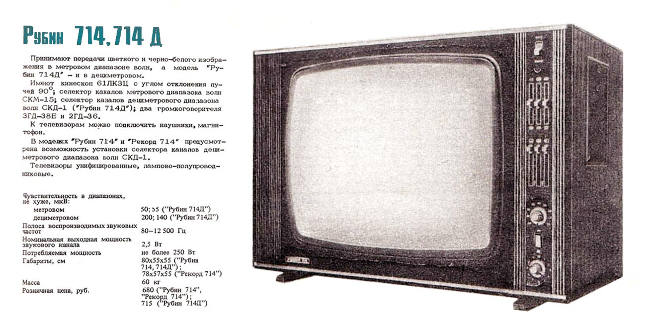приёмник цветного изображения "Рубин-714/Д" с 1976 года выпускало Московское