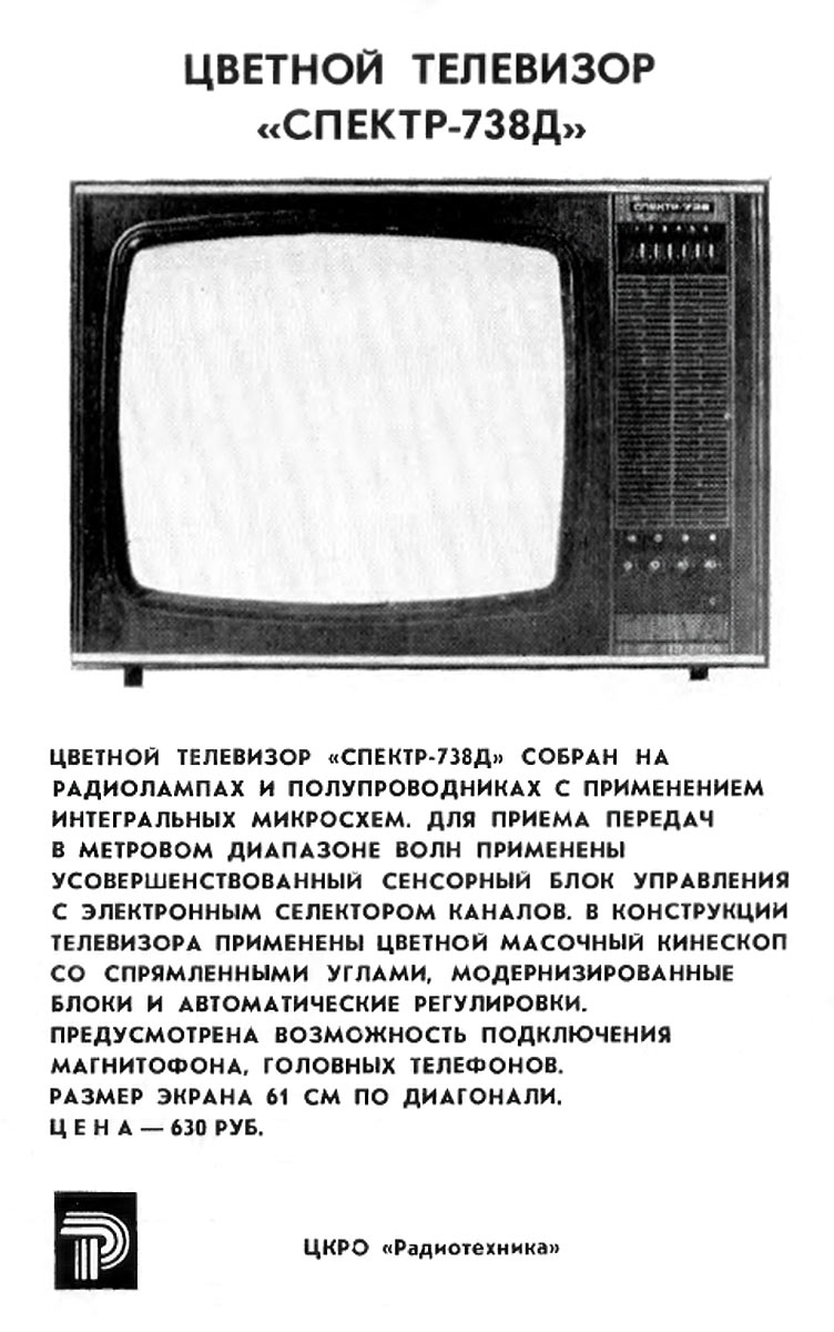 выпускал телевизор "Спектр-738/Д" по своей конструкции, эл. схеме и внешнему