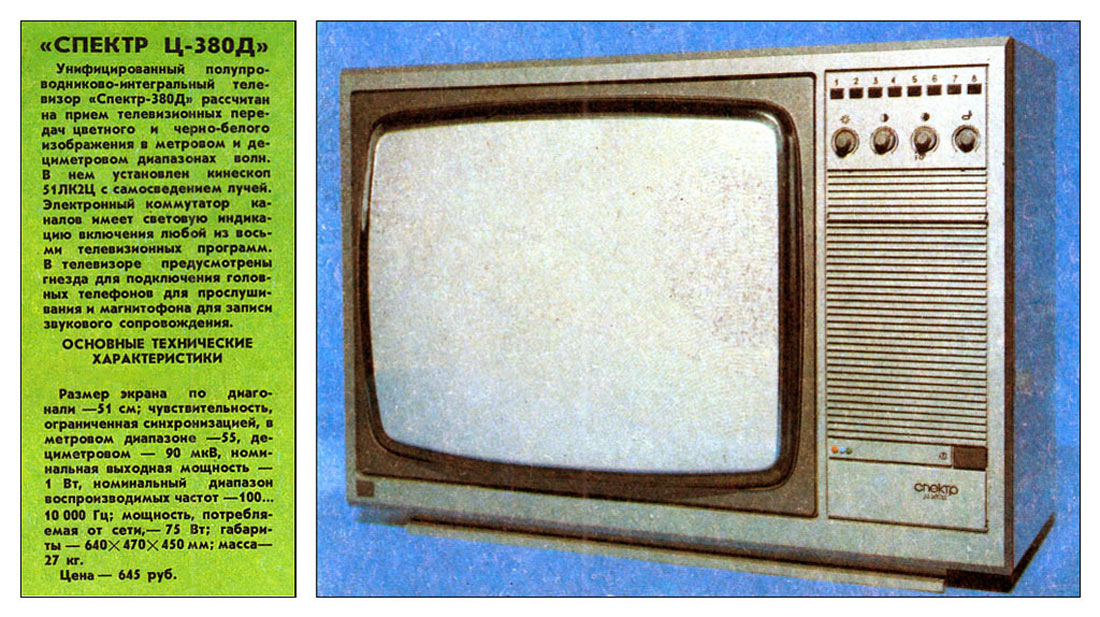 модульный цветной стационарный телевизор ''Спектр Ц-380Д'' принимает цветное