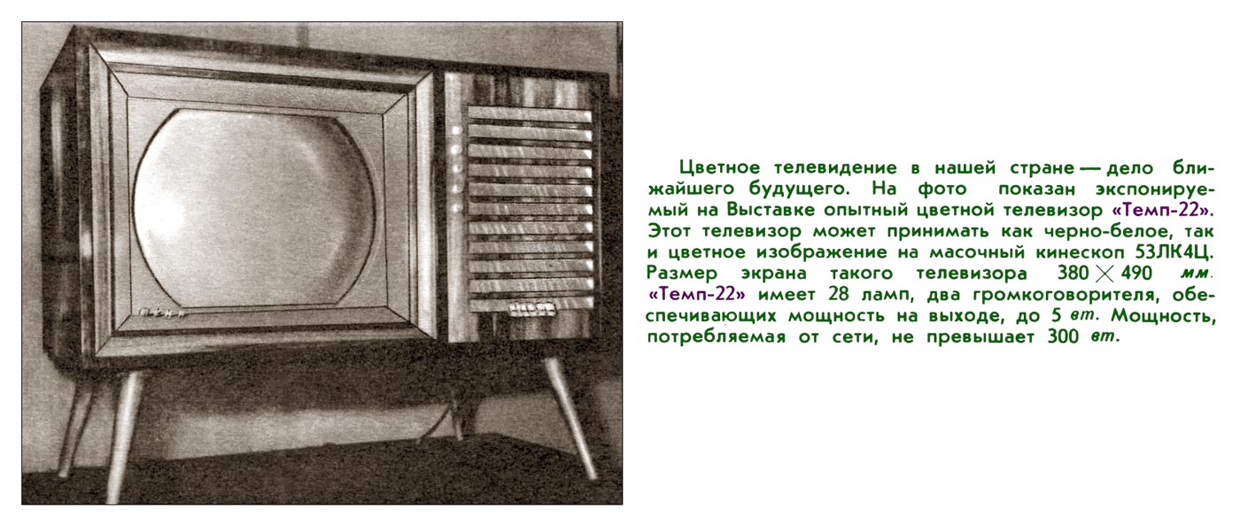 приёмник цветного изображения "Темп-22" опытно выпускали в 1959 года. С