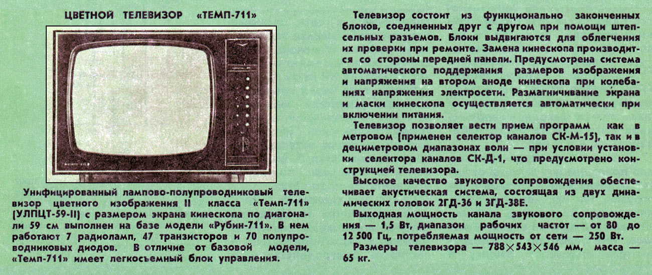 приёмник цветного изображения "Темп-711" с 1976 года выпускал Московский