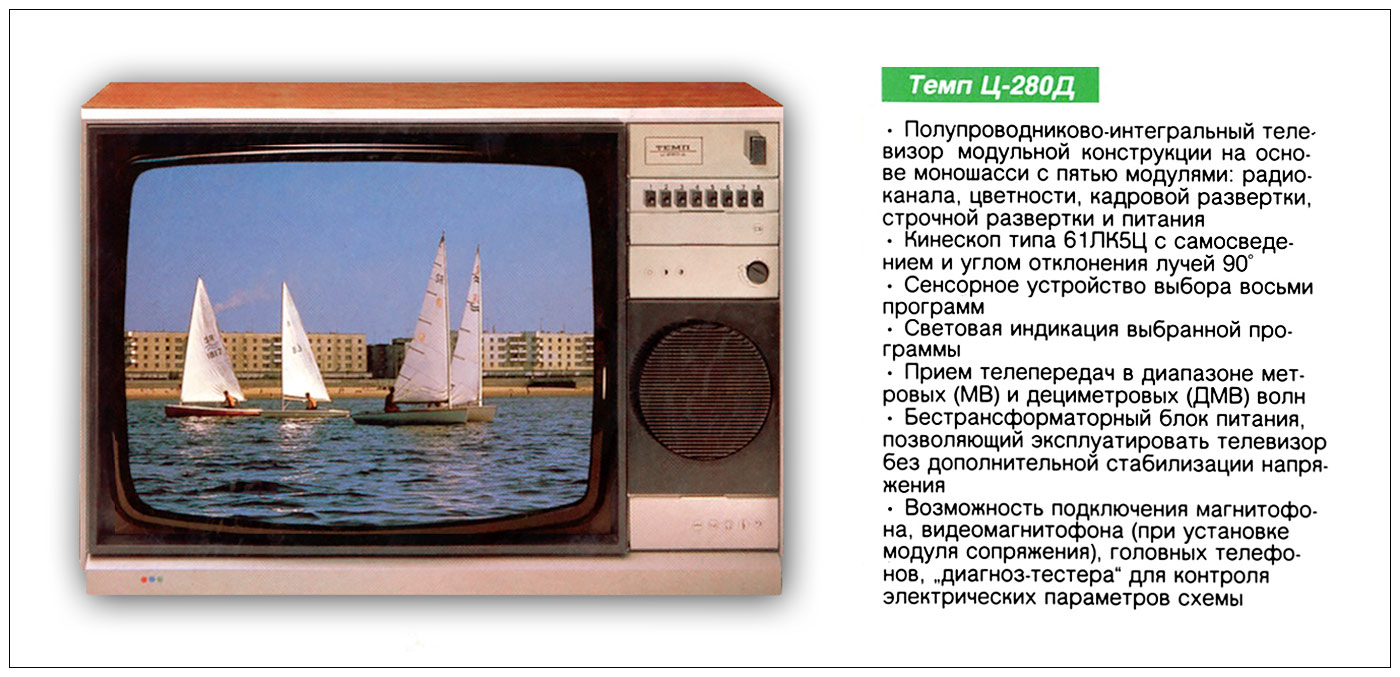 телевизор "Темп Ц-280/Д" с 1985 года выпускал Московское ПО "Темп". Унифицированный