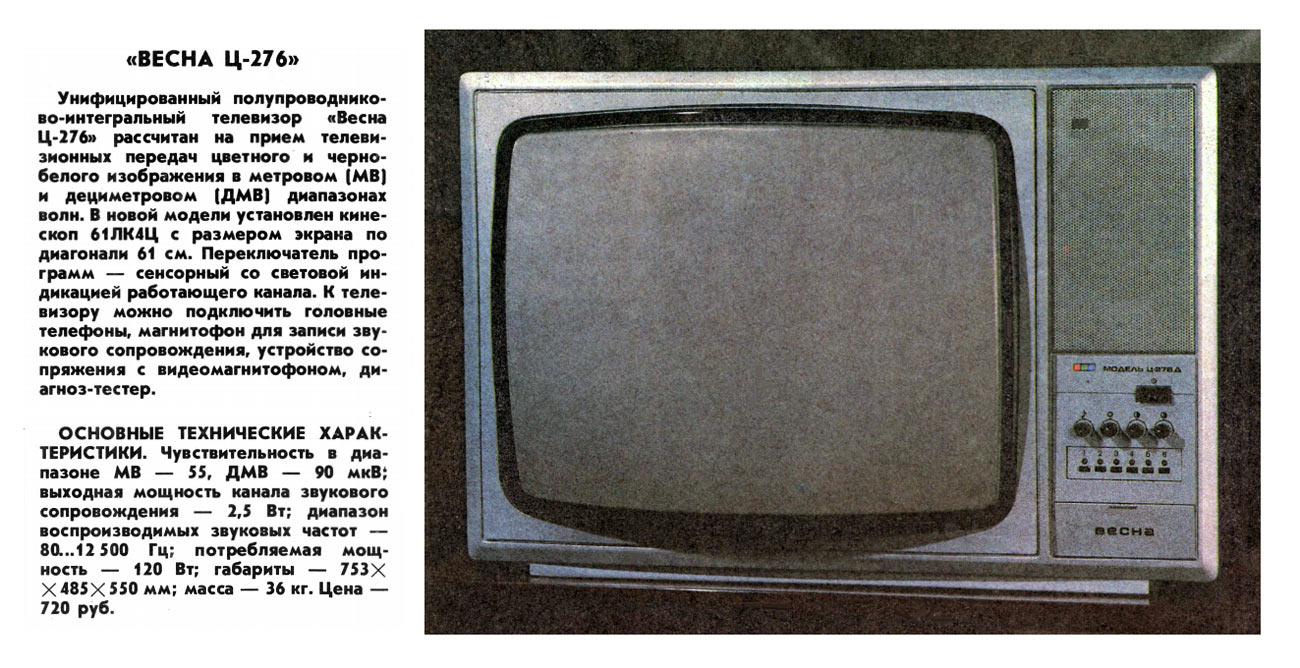 цветного изображения "Весна Ц-276/Д" с 1986 года выпускал Днепропетровский