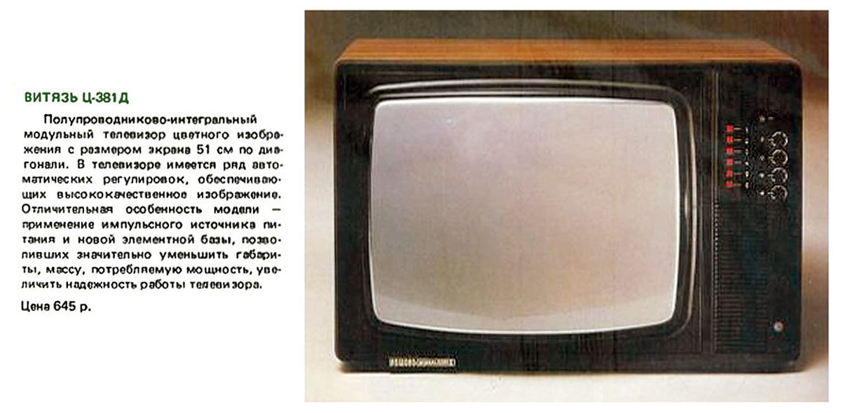 приёмник цветного изображения "Витязь Ц-381/Д" с 1985 года выпускал Витебский