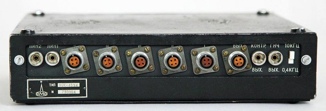 Микшерное устройство "90К-43У4" выпускалось Ленинградским оптико-механическим объединением возможно с 1979 года. Видеосюжет об устройстве. Фотографии с сайта https://retrotexnika.ru/.