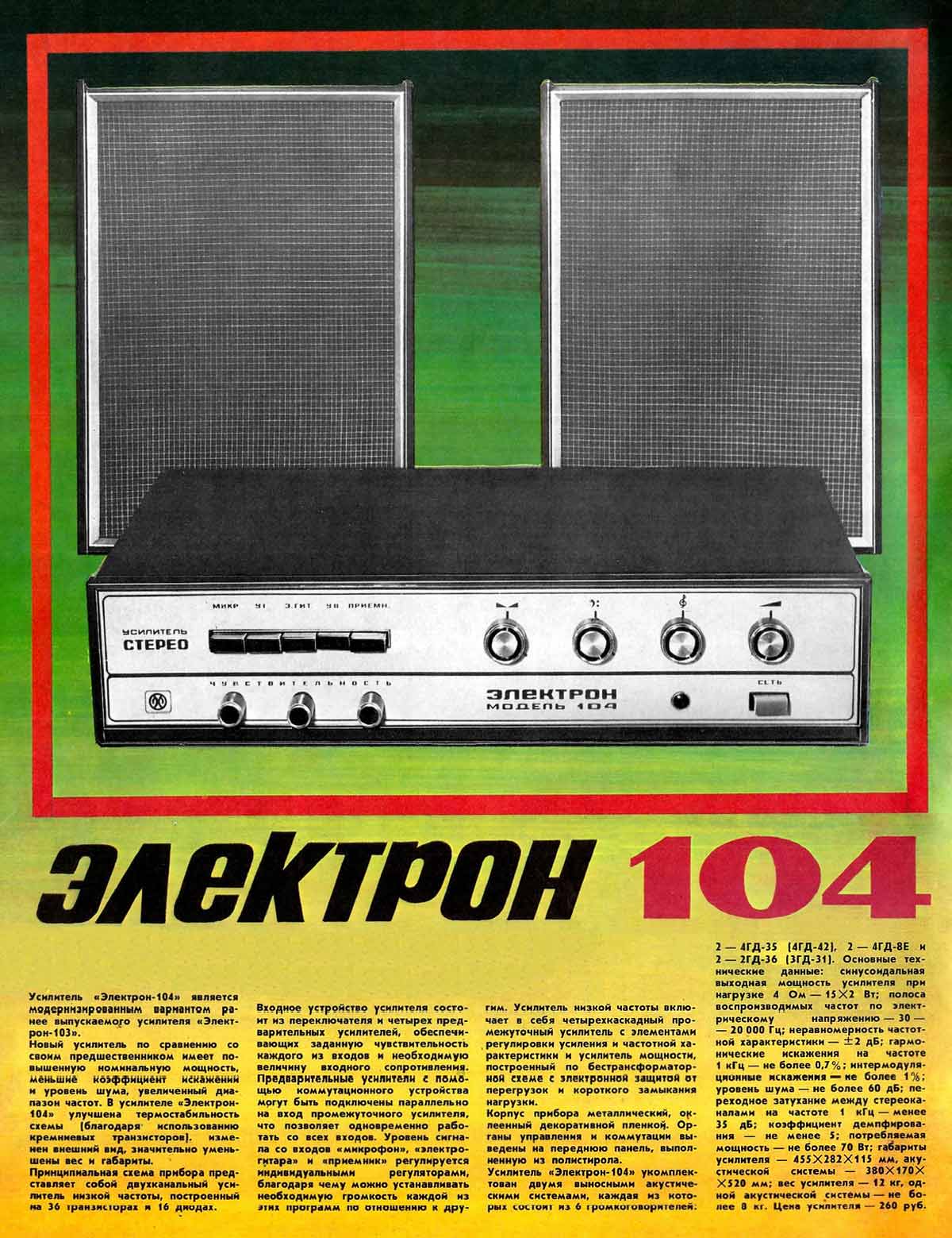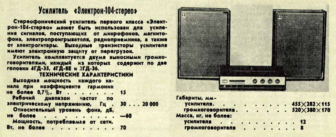 усиление моно и стереофонических фонограмм. Имеет электронную защиту выходных