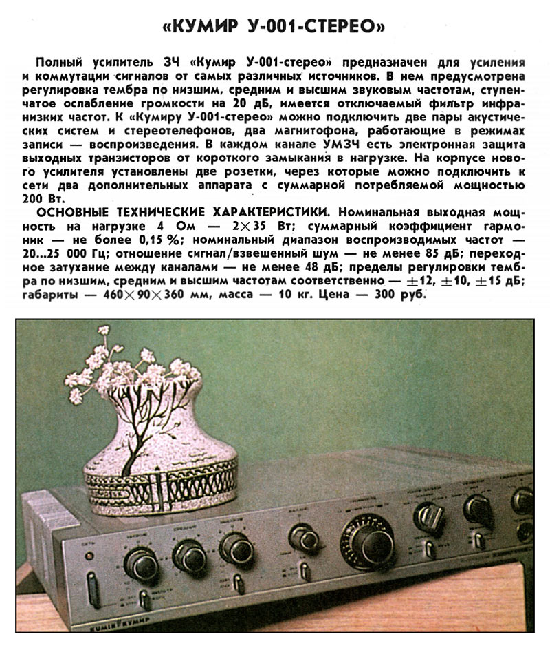 полный усилитель "Кумир У-001-стерео" с 1988 года выпускал Ульяновский