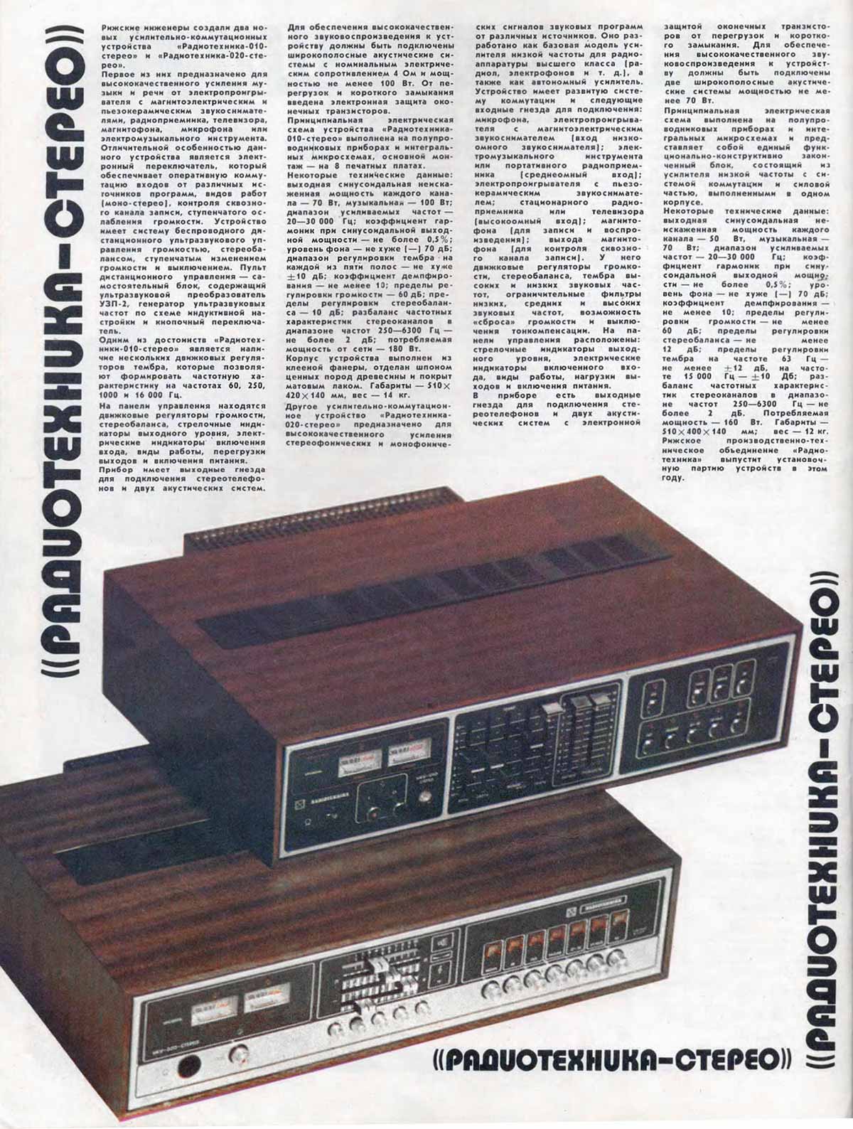 устройство высшего класса "Радиотехника-010-стерео" разработано в 1975
