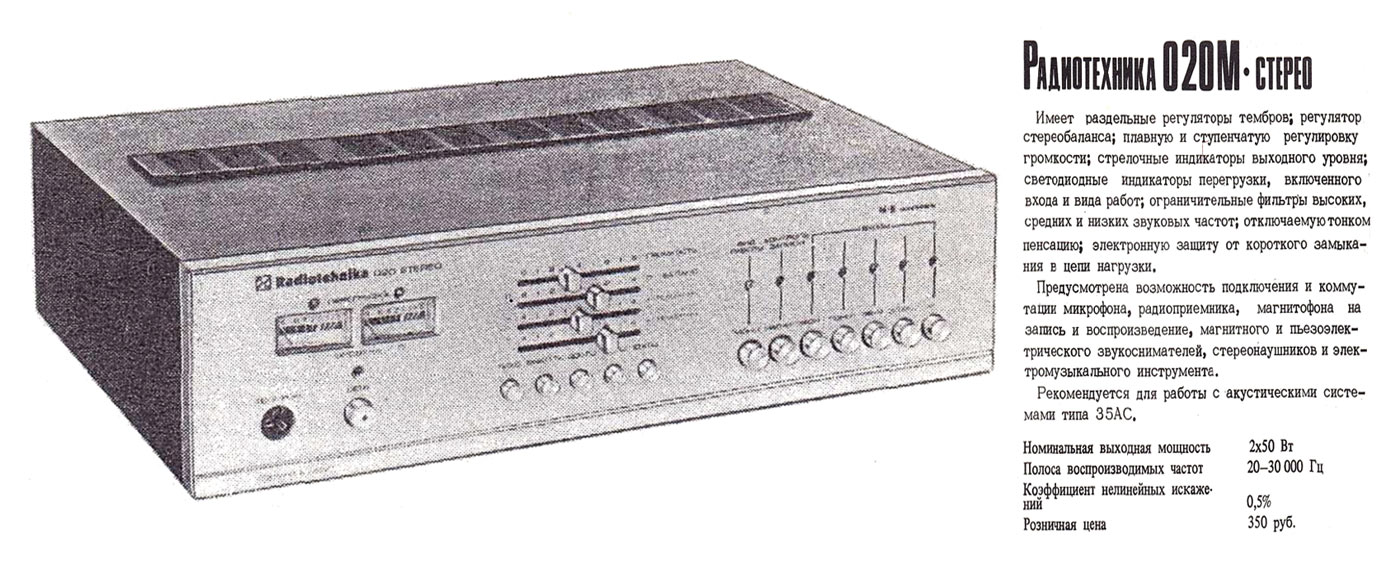 Усилитель высшего класса "Радиотехника-020М" разработан возможно в 1979 году Рижским радиозаводом имени Попова. Другой информации, кроме как рекламной пока нет.
