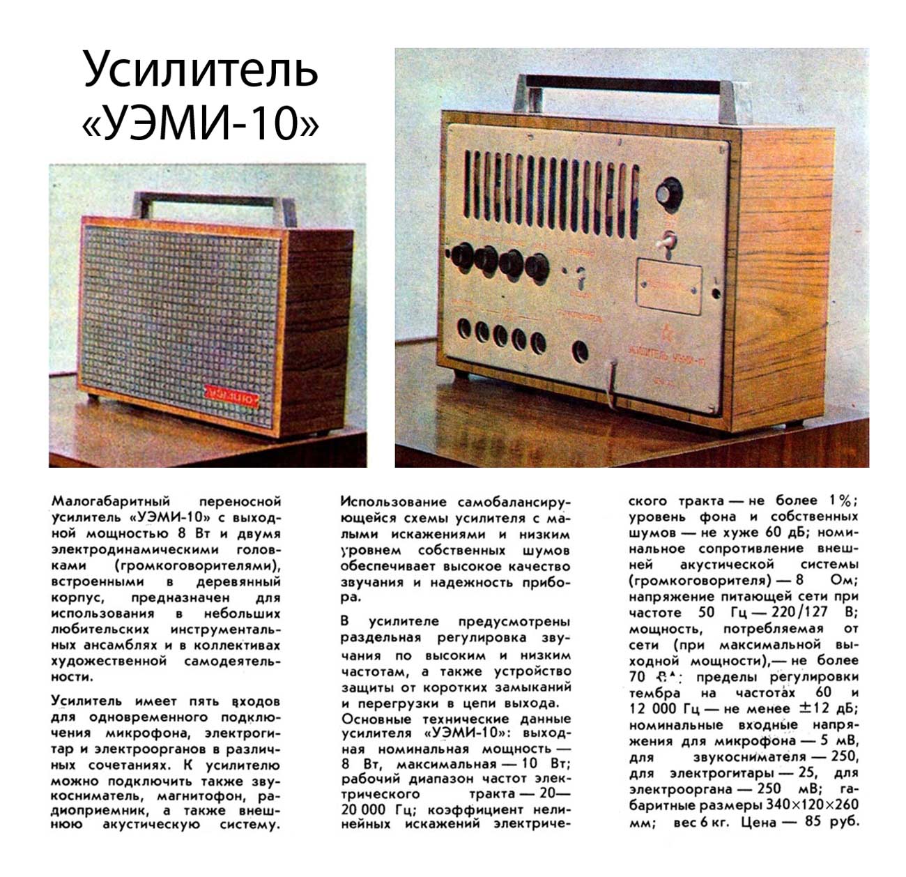 низкой частоты "УЭМИ-10" выпускался с 1975 года. Усилитель эстрадный музыкальный