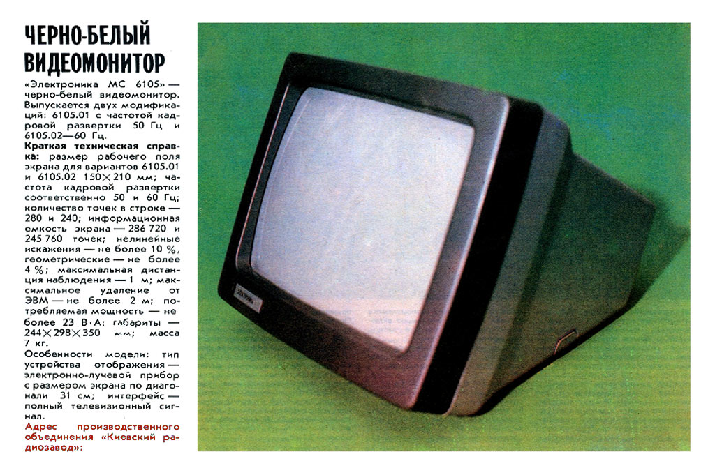монитор "Электроника МС-6105" выпускался предположительно с 1988 года Киевским
