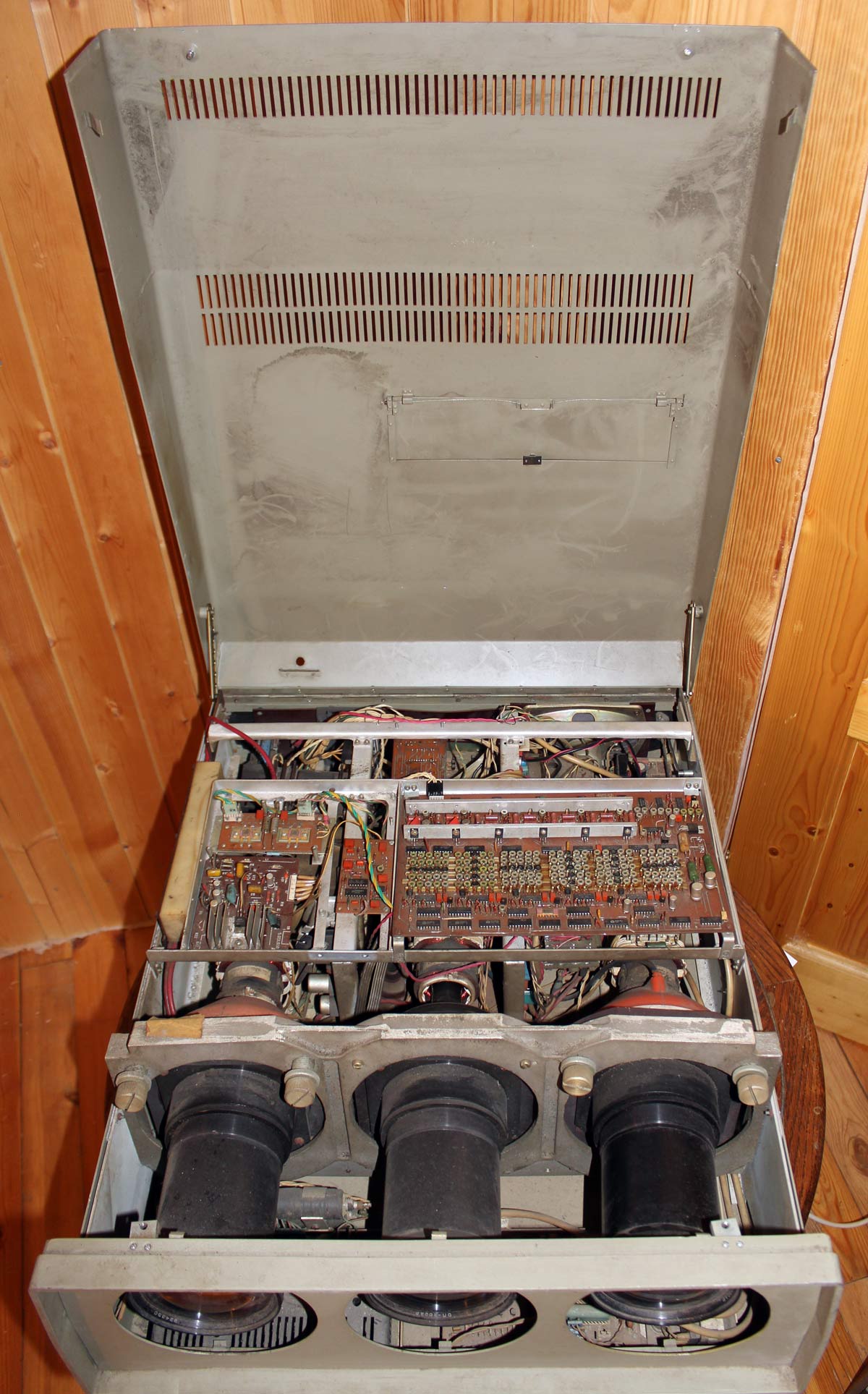 Собран видеопроектор на 3 кинескопах высокой яркости фирмы TESLA и схемотехнике
