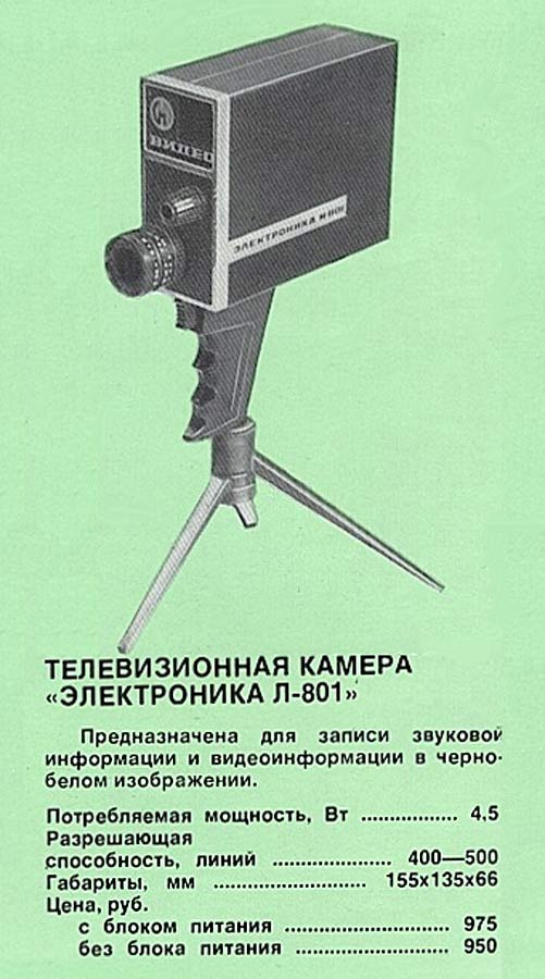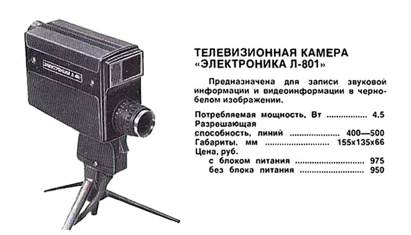 Фотографии видеокамеры "Электроника Л-801" с сайта http://video1975.narod.ru/.