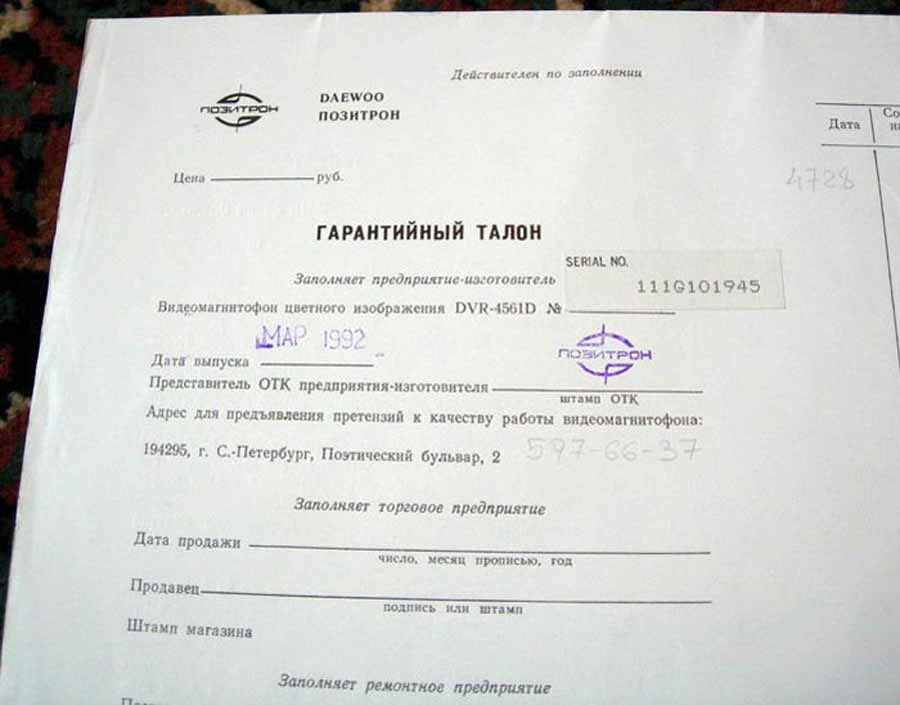 "Daewoo-Позитрон DVR-4561D" выпускался с 1992 года на ОАО "Позитрон",