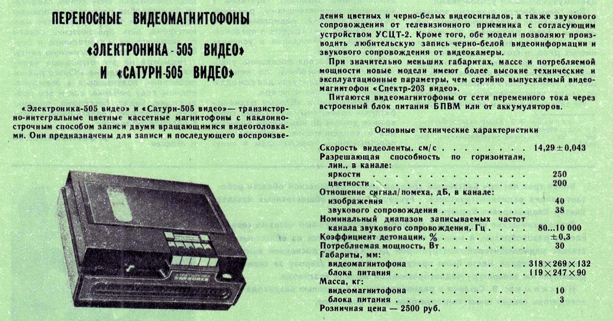 с 1979 года он выпускался как "Сатурн-505-видео".