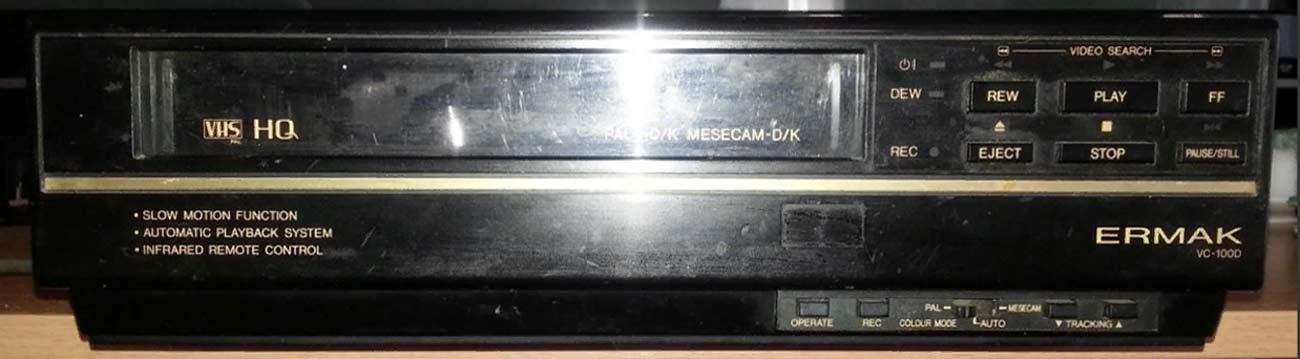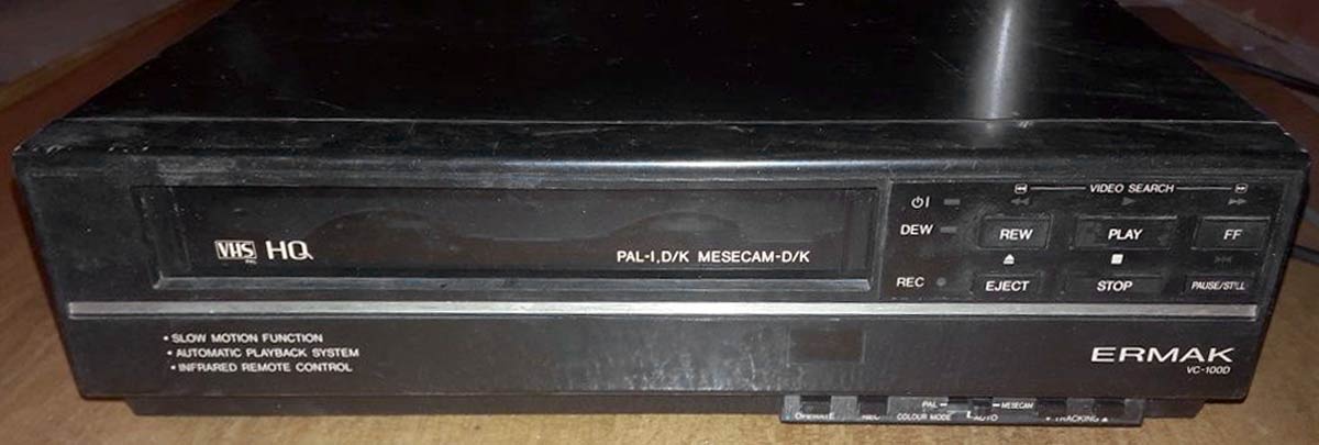 Кассетный видеомагнитофон "Ермак VC-1000" выпускался предположительно с 1994 года на Павлодарском радиозаводе, Казахстан. Крупноузловая сборка на основе японского видеомагнитофона Sharp VC-6V3.