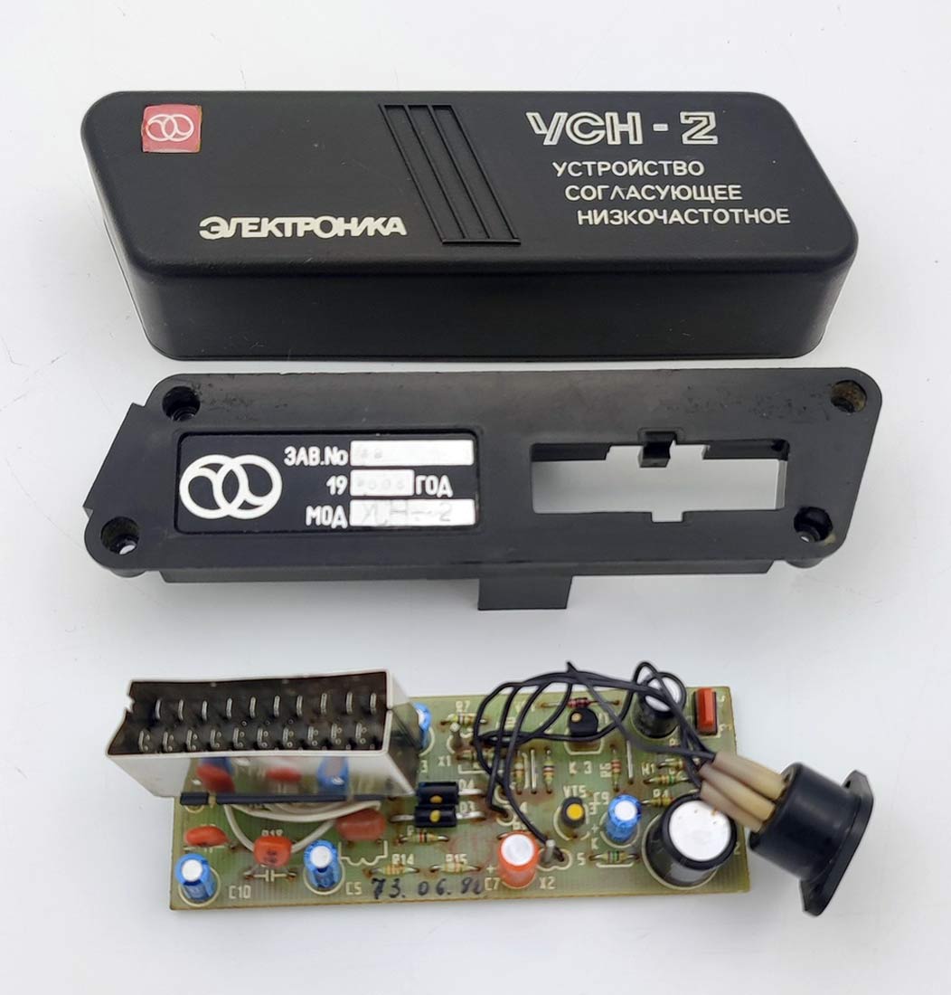 Устройство согласующее низкочастотное "УСН-2" возможно с 1990 года выпускало Воронежское НПО "Видеофон". Устройство служит для согласования видеомагнитофона с телевизором по НЧ.